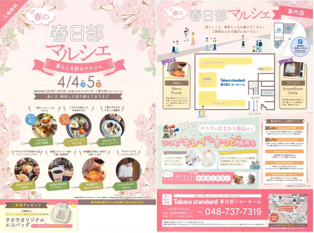 タカラスタンダード春日部ショールームにて春の春日部マルシェが開催されます。